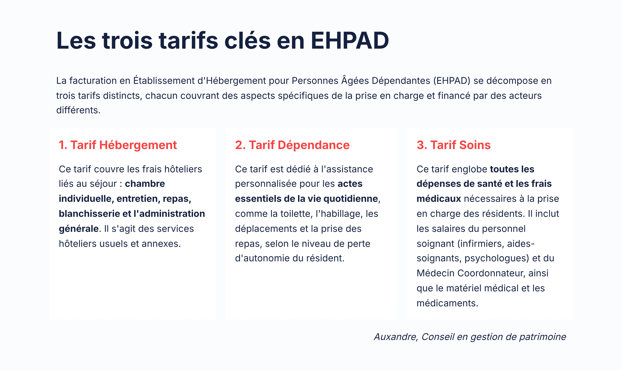 Le fonctionnement d’un EHPAD repose sur un modèle unique, qui est la clé de son statut médico-social : une répartition de la gestion et du financement en trois grands postes de dépenses, appelés les trois tarifs. Cette structure garantit la transparence des coûts pour les résidents et les investisseurs.