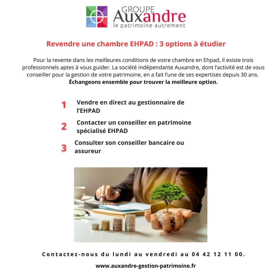 Il existe plusieurs possibilités pour revendre une chambre EHPAD : la vente directe au gestionnaire de la chambre, au gestionnaire de patrimoine qui s’occupe de vous ou la cession directe par vos propres contacts. Le groupe de conseil en gestion de patrimoine Auxandre propose à ses clients depuis trois décennies la revente d’unités EHPAD dans les meilleures conditions possibles sur le marché de l’occasion.